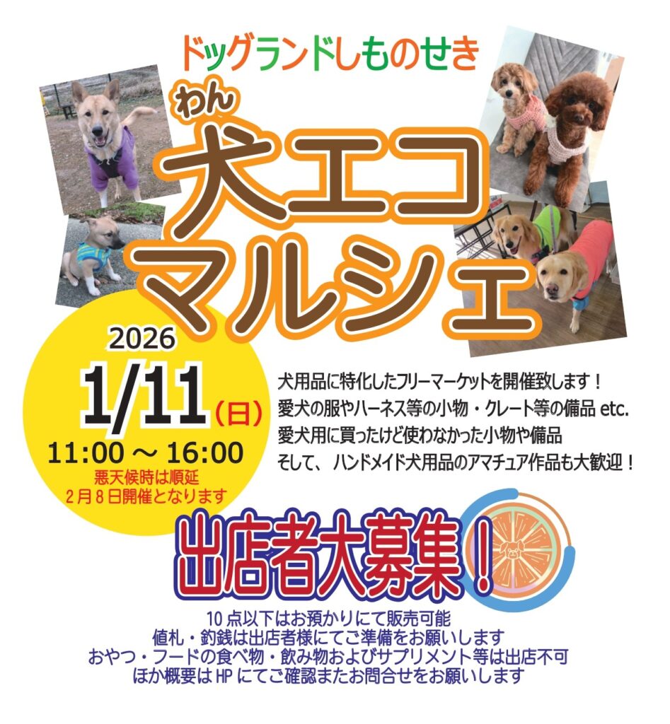 愛犬が使用していた小物や備品・愛犬用に買ったけど使わなかった品物、そして犬用の服や小物を手作りしているけど売ったことはないアマチュア作家さんの作品の、フリーマーケットを開催します!