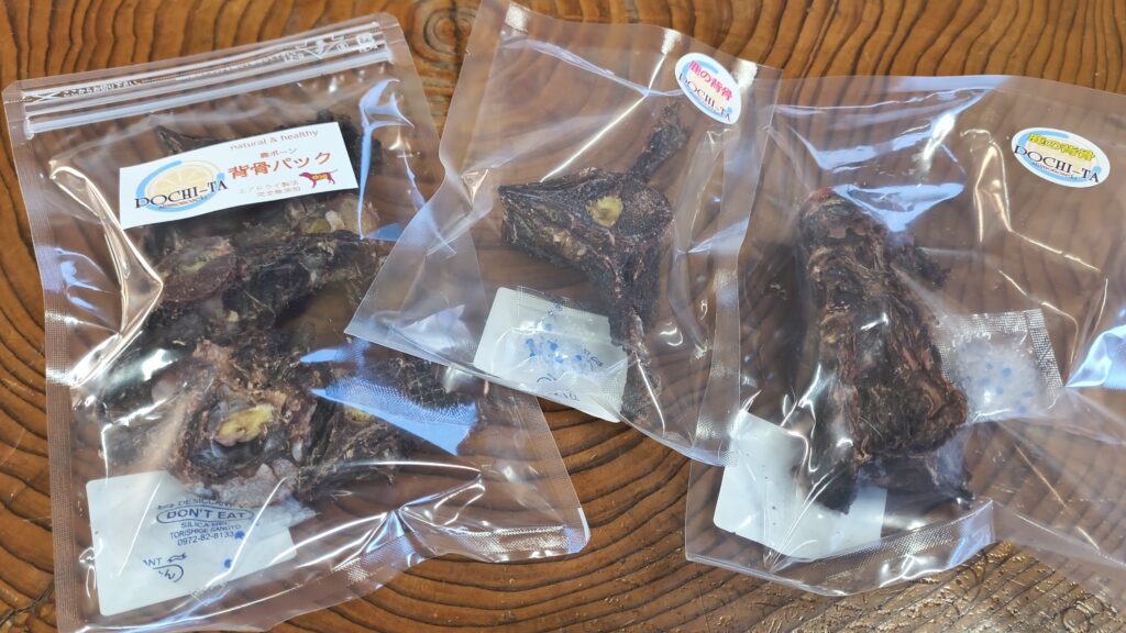 鹿のジャーキーやあばら骨・背骨等を販売中です。